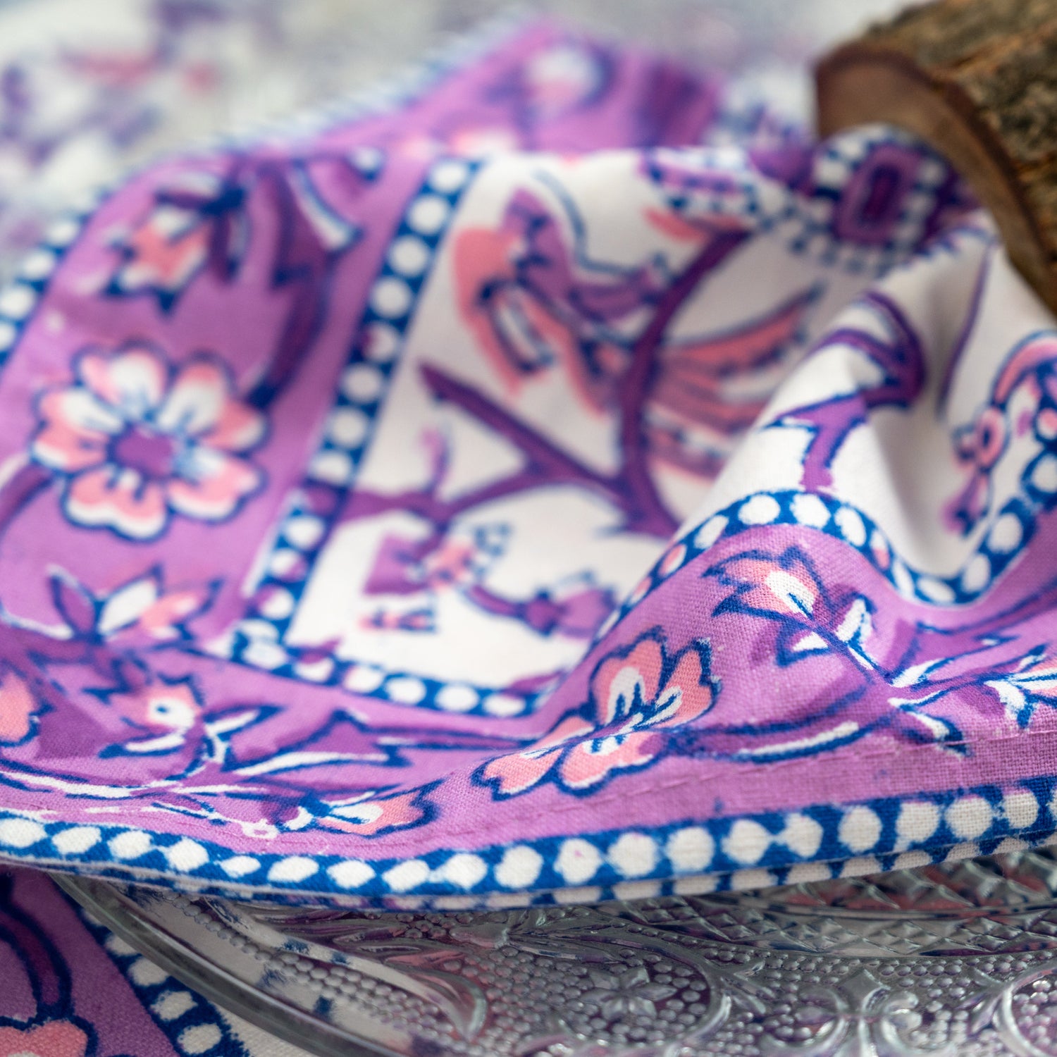 Our hand block printed bed sheets and table linens are created in small batches—every layer of color carefully stamped by hand, every print unique. Because this process is entirely manual, no two pieces are ever alike—each one is a true artisan-made textile.