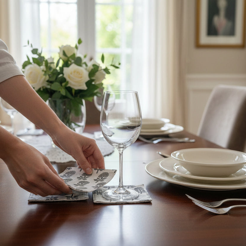 In addition to their practical function, these coasters make a thoughtful and meaningful gift, combining artisan craftsmanship with eco-friendly materials for a lasting impression.