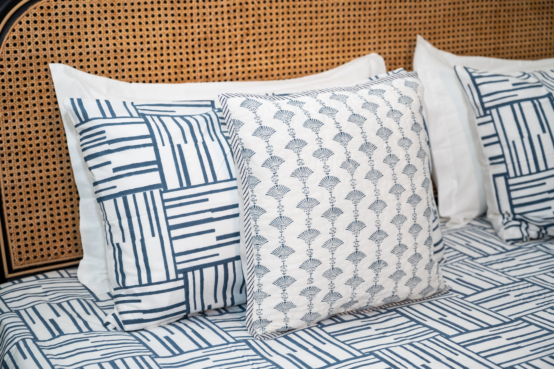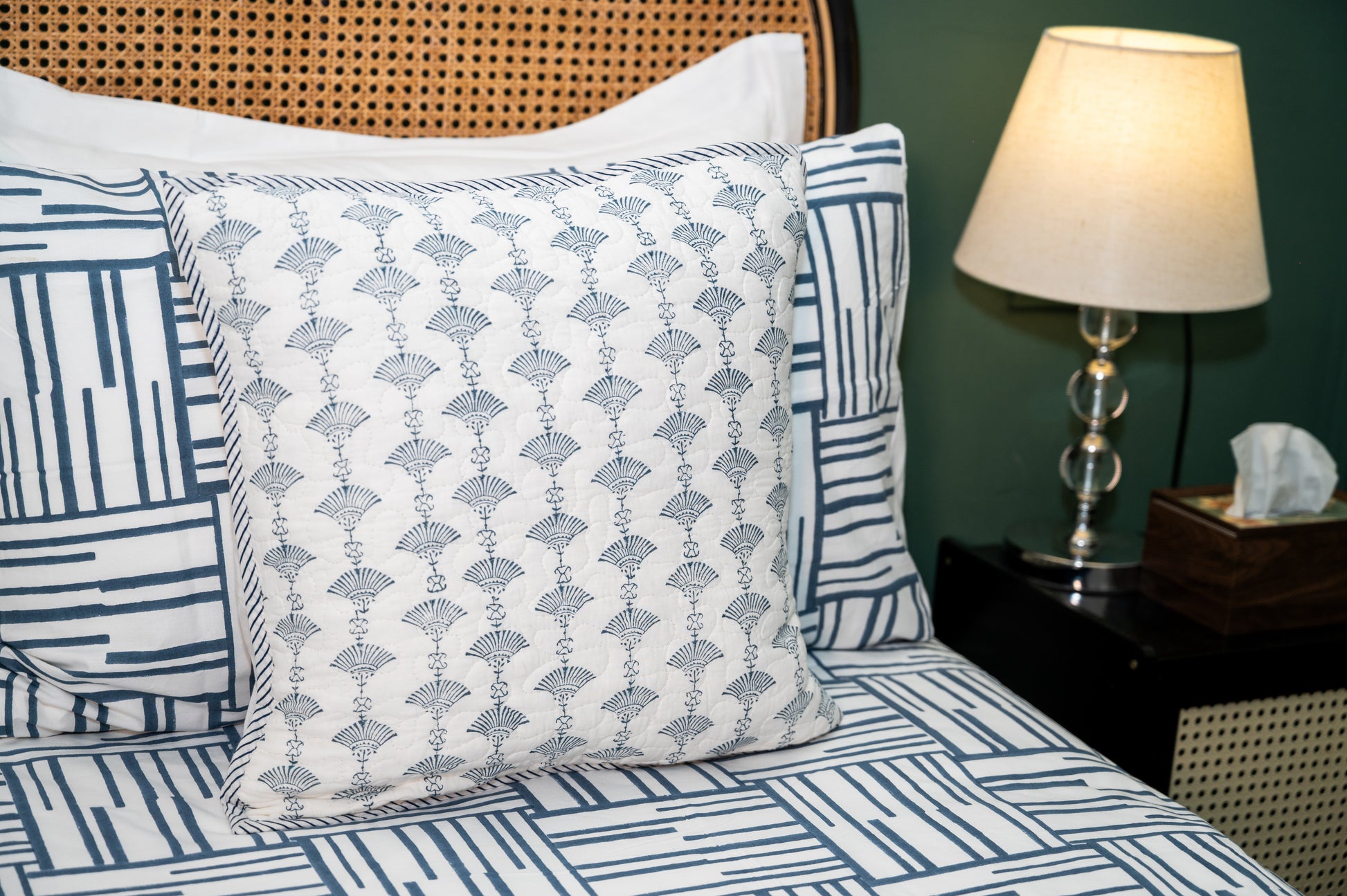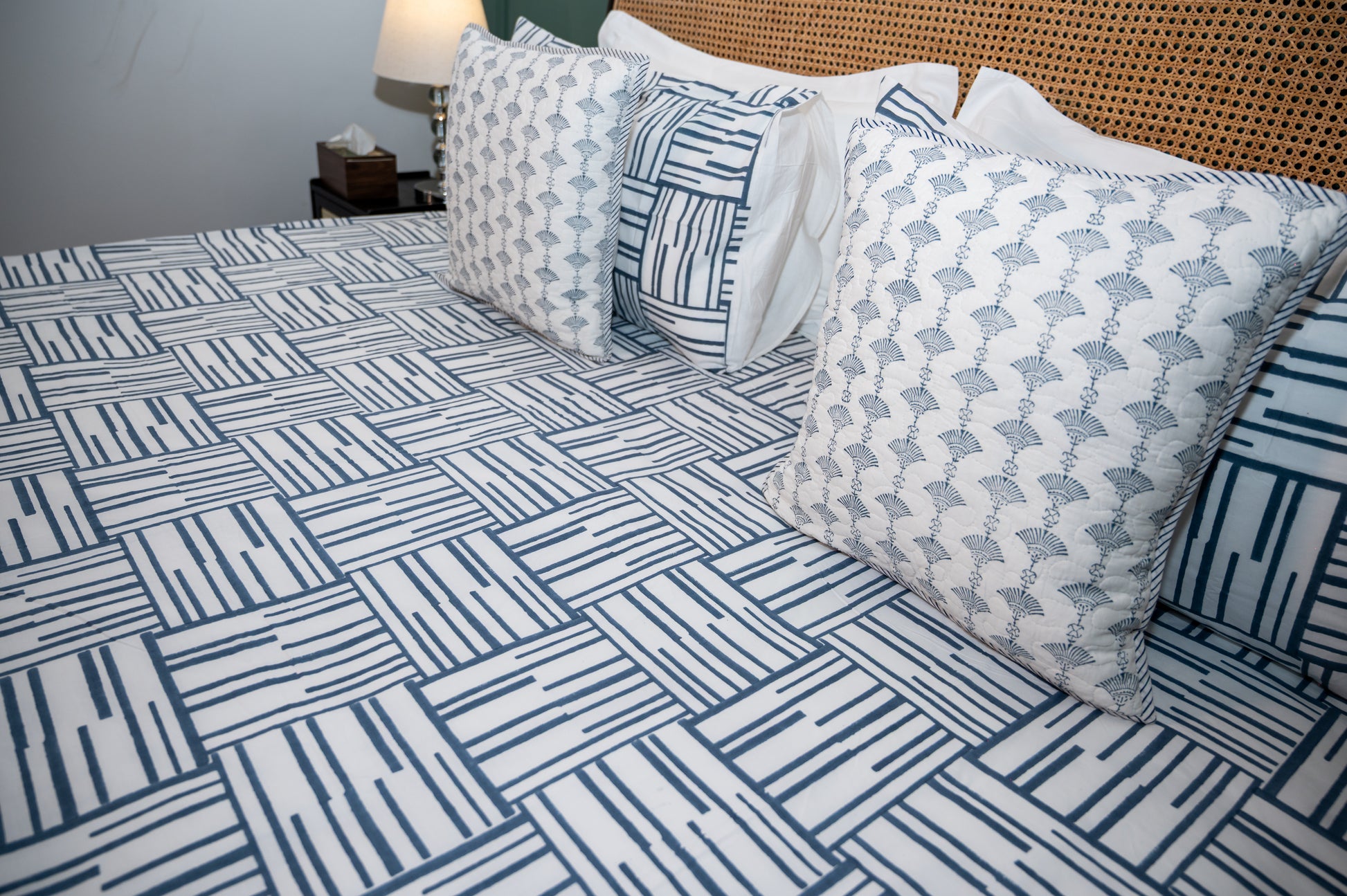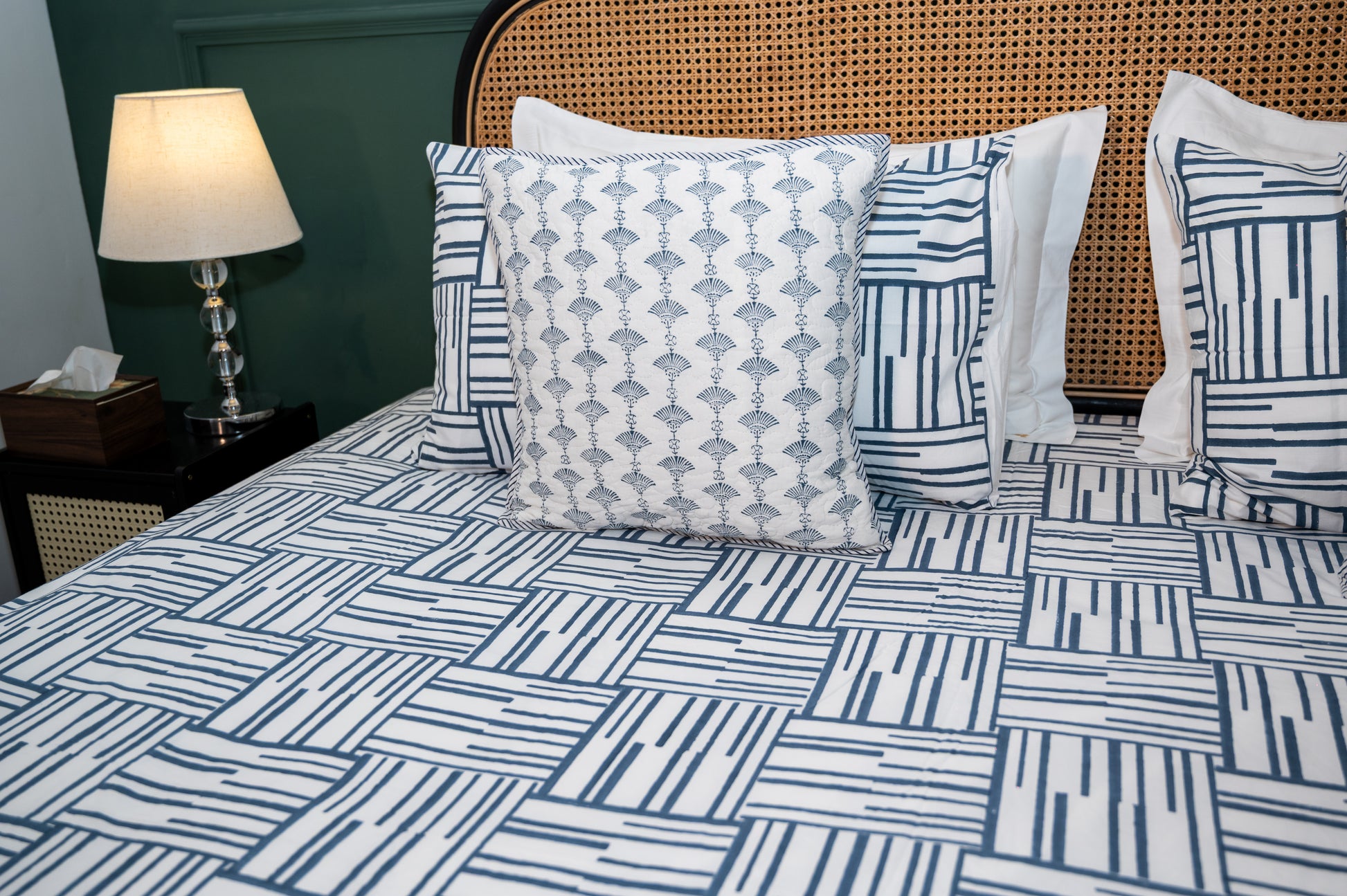 Inspired by the graceful flow of water, this handblock printed bedsheet features a captivating geometric pattern that mirrors the fluidity and harmony of a stream. Symbolising the power of consistent, gentle effort, the design reflects the transformative journey of gradual change. Waterslide brings a sophisticated sense of movement and tranquillity to your space, making it ideal for those who appreciate serenity and subtle inspiration in their bedroom décor.